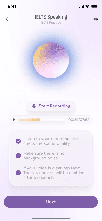 Simulate all 4 skills. Speaking, Writing, Reading, Listening and get your predicted band score before test day. Free to start.